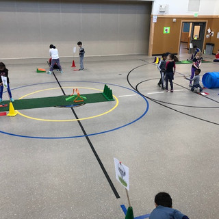 Watch out parents - We have some GOLFERS on our hands! Your students have learned the basics of golf: How to hold a club, how to position their feet and body to the ball, how to putt and how to chip with a wedge club. We did a few days of hitting toward targets and spent a week working through a "putt-putt" 9-hole course! The kids kept score for one another and learned the terminology for the words Respect, Courtesy and Integrity and how those play into the game of GOLF!